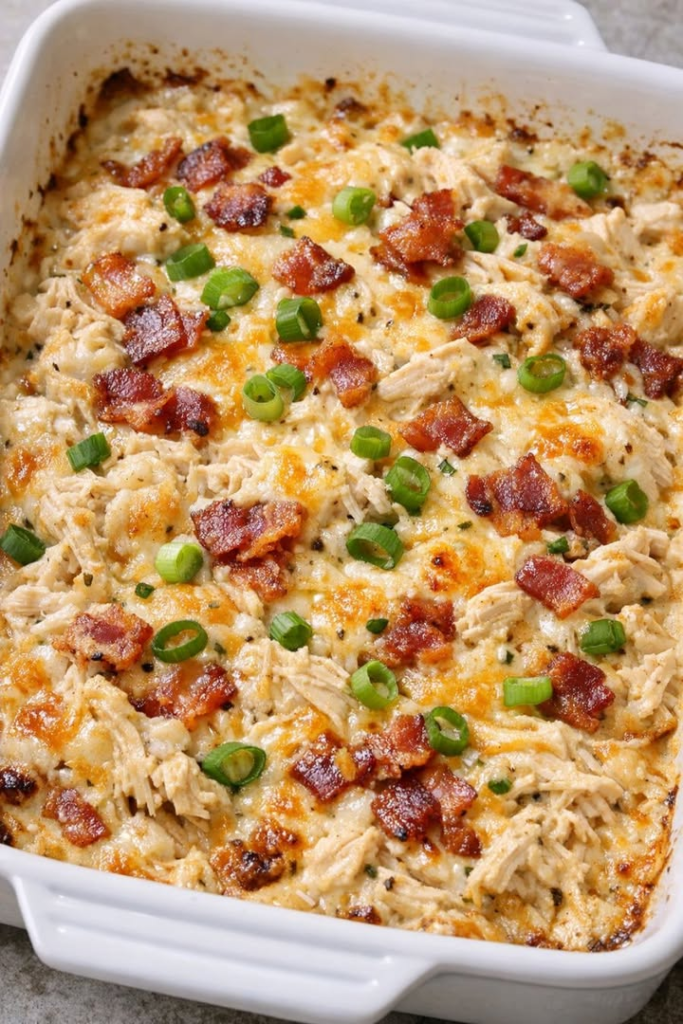 Remove the foil and bake for another 10–15 minutes, or until the chicken reaches an internal temperature of 165°F (74°C). The cream cheese will be melted, bubbly, and slightly golden. -