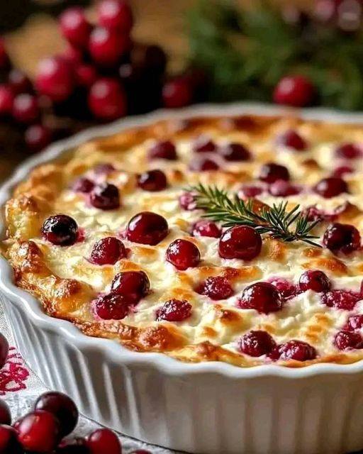 Spoon the cranberry mixture over the cream cheese layer in the baking dish.