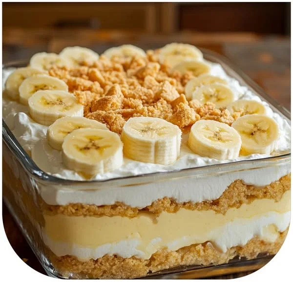 Perfect for summer gatherings, family reunions, or any potluck event, this dessert is assembled in layers, each one contributing its own burst of flavor and creamy satisfaction. The buttery vanilla wafer crust sets the stage, followed by a smooth cream cheese blend, luscious banana pudding, and topped with whipped topping and crushed cookies. It’s a showstopper that requires zero baking and minimal hands-on time.