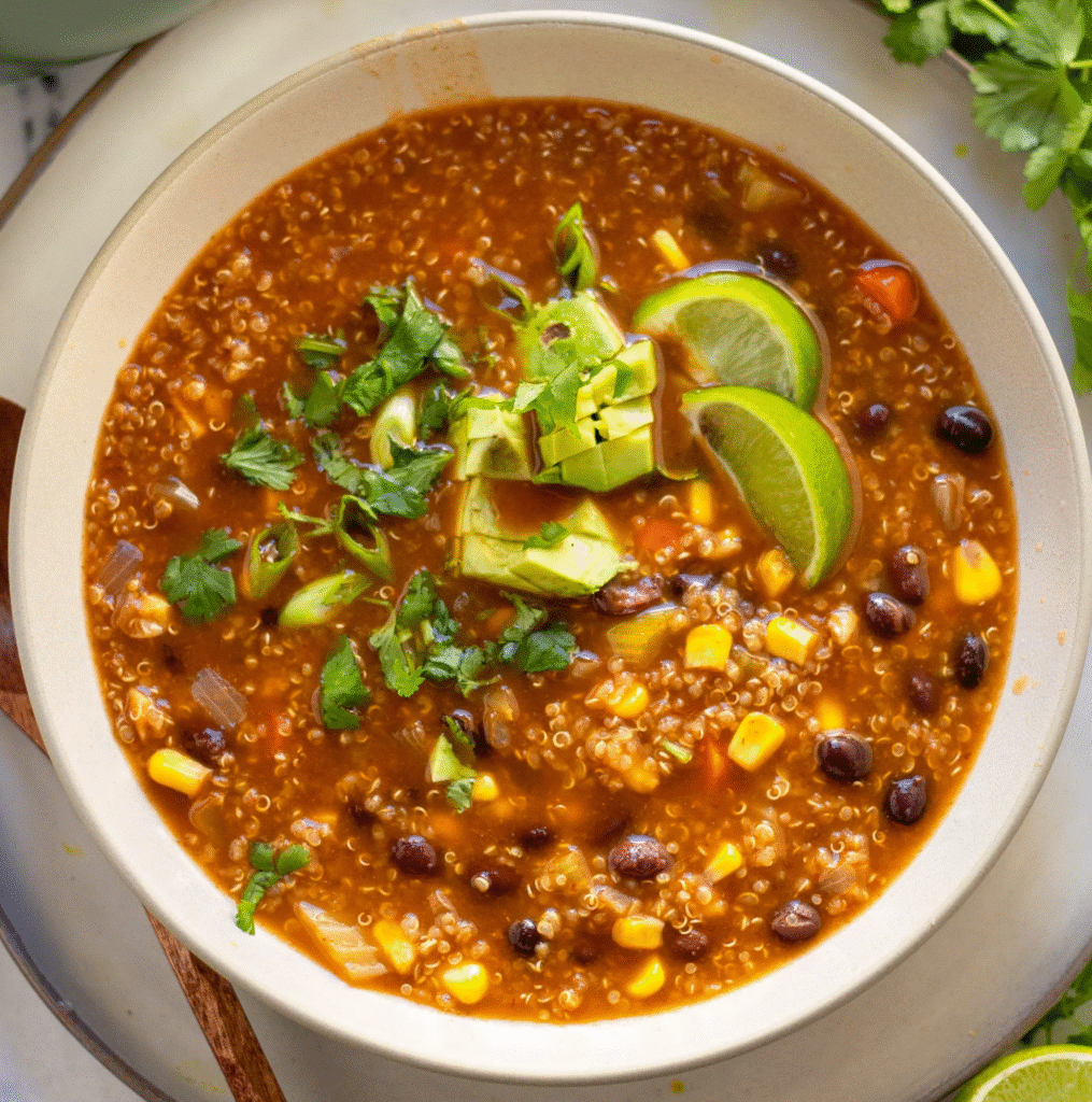 A wholesome, fiber-rich soup that’s smoky, satisfying, and loaded with plant-based protein. This Black Bean and Quinoa Soup brings together nutrient-dense beans, quinoa, and vibrant veggies simmered in a flavorful tomato-chipotle broth — a true comfort dish perfect for cozy evenings or healthy meal prep!