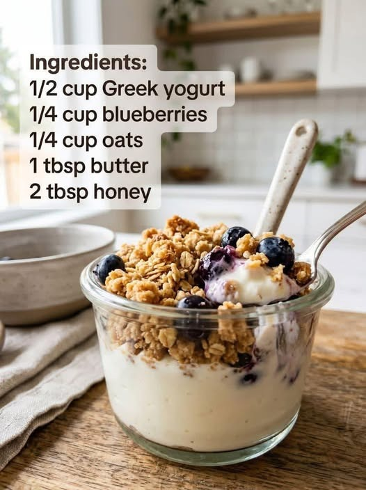 This is one of those simple recipes that feels like a treat but is actually good for you. The creamy yogurt, sweet honey, and crunchy oats come together perfectly, while the blueberries add freshness and a little burst of flavor.