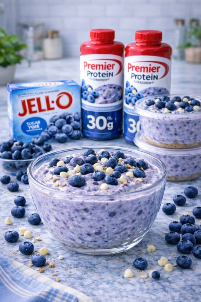 This Blueberry Protein Cheesecake Bowl is thick, creamy, and tastes like blueberry cheesecake in a bowl—without the guilt. Made with a protein shake and sugar-free pudding mix, it’s an easy no-bake dessert or snack that’s high in protein, low in sugar, and incredibly satisfying.