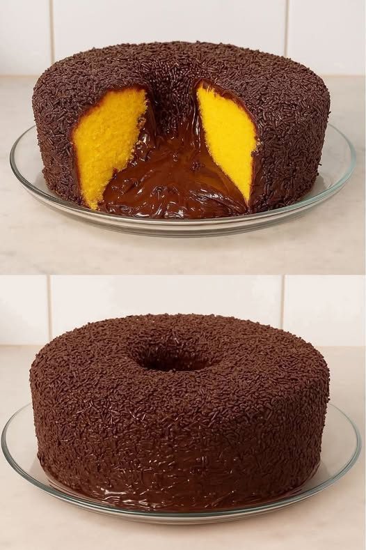 A light, fluffy carrot cake drenched in creamy chocolate brigadeiro sauce and topped with chocolate sprinkles — a beloved Brazilian classic that melts in your mouth.
