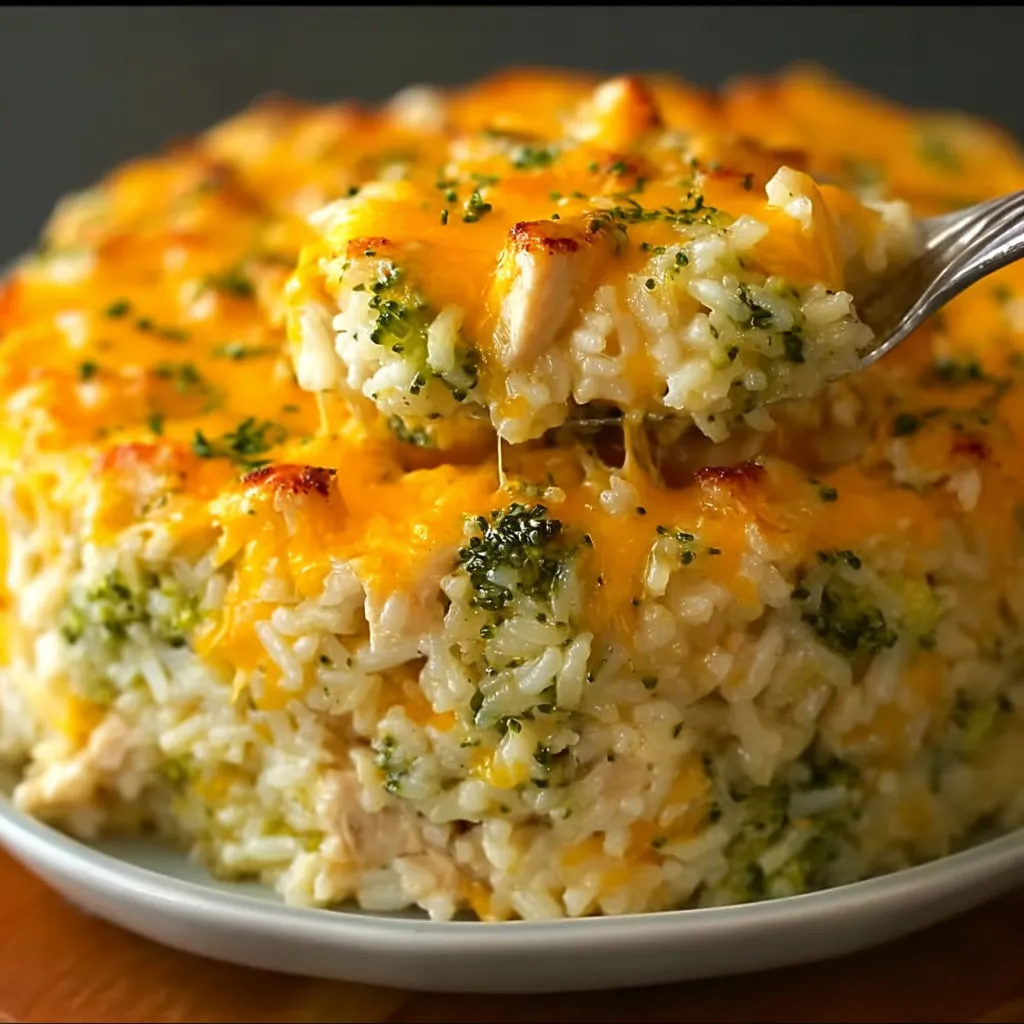 Warm, hearty, and irresistibly creamy — this Broccoli Rice Cheese Chicken Casserole is the perfect one-pan meal for weeknights or potlucks!