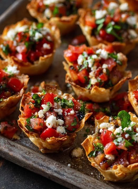Crispy phyllo cups filled with a fresh, juicy bruschetta topping and finished with creamy feta. Perfect for parties, holidays, or an easy appetizer that looks impressive with minimal effort.