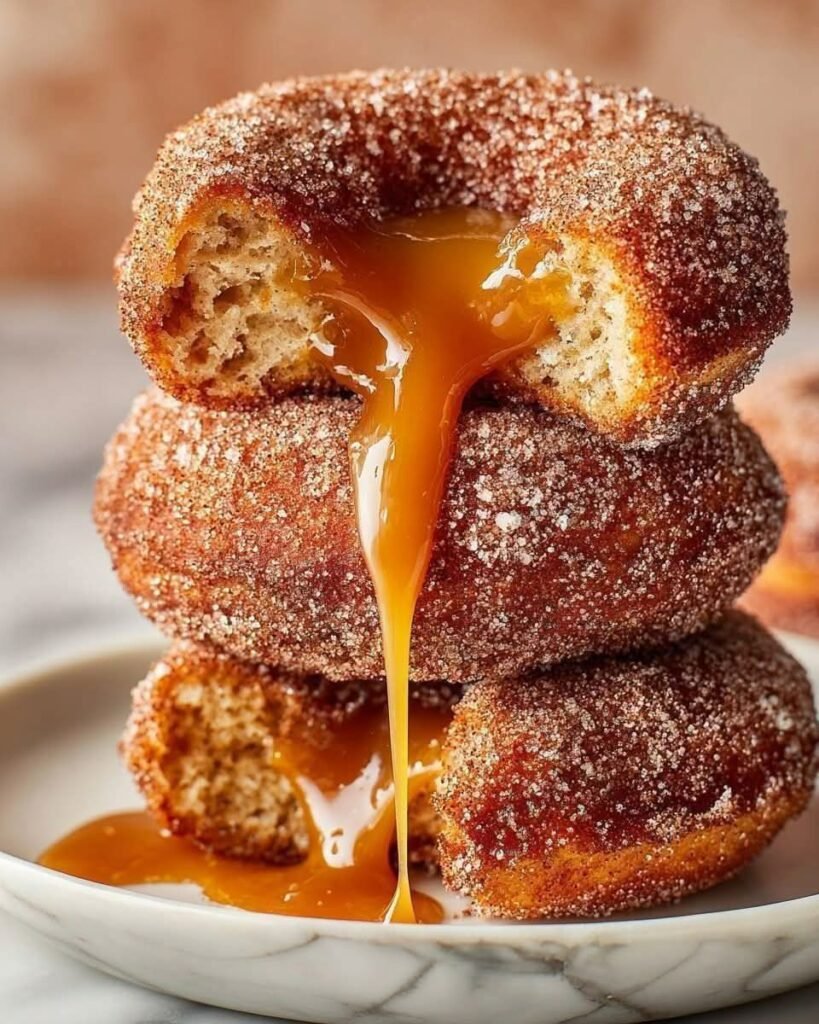 These soft, fluffy caramel-filled donuts are rolled in cinnamon sugar and have a gooey caramel center that oozes out with each bite. Perfectly sweet and indulgent, these homemade donuts are ideal for breakfast, dessert, or any occasion where you want to impress your loved ones.