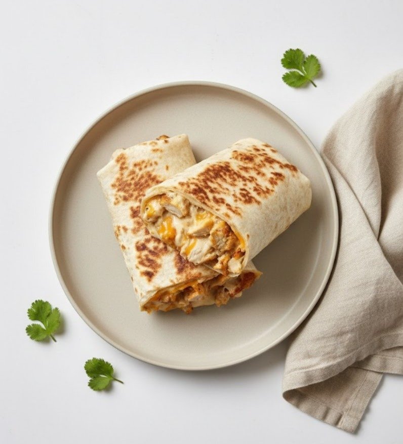 Quick Description Juicy seasoned chicken wrapped in a soft tortilla with a rich, creamy cheese sauce. This is a protein-packed, …