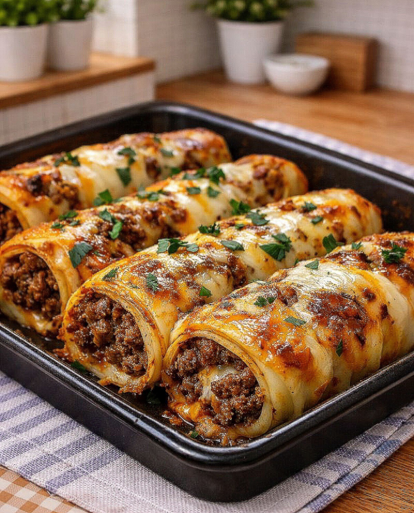 This Cheesy Beef Cannelloni Bake is a cozy, classic oven dish filled with savory ground beef, smothered in rich sauce, and topped with layers of melted cheese. Itโs the kind of meal that fills the kitchen with warmth while it bakesโdeeply satisfying, family-friendly, and perfect for slow, relaxed dinners.