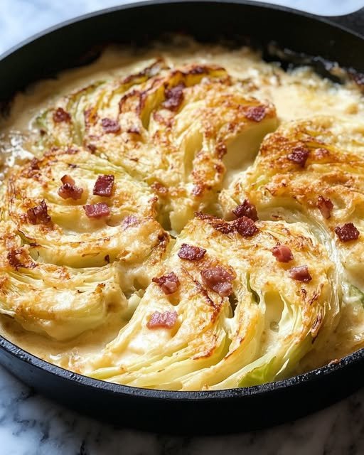 This Cheesy Cabbage Gratin is a rich and satisfying dish that combines tender cabbage with creamy garlic sauce and two types of cheeseโGruyรจre and Parmesan. Itโs the perfect low-carb, savory side dish thatโs both comforting and flavorful.