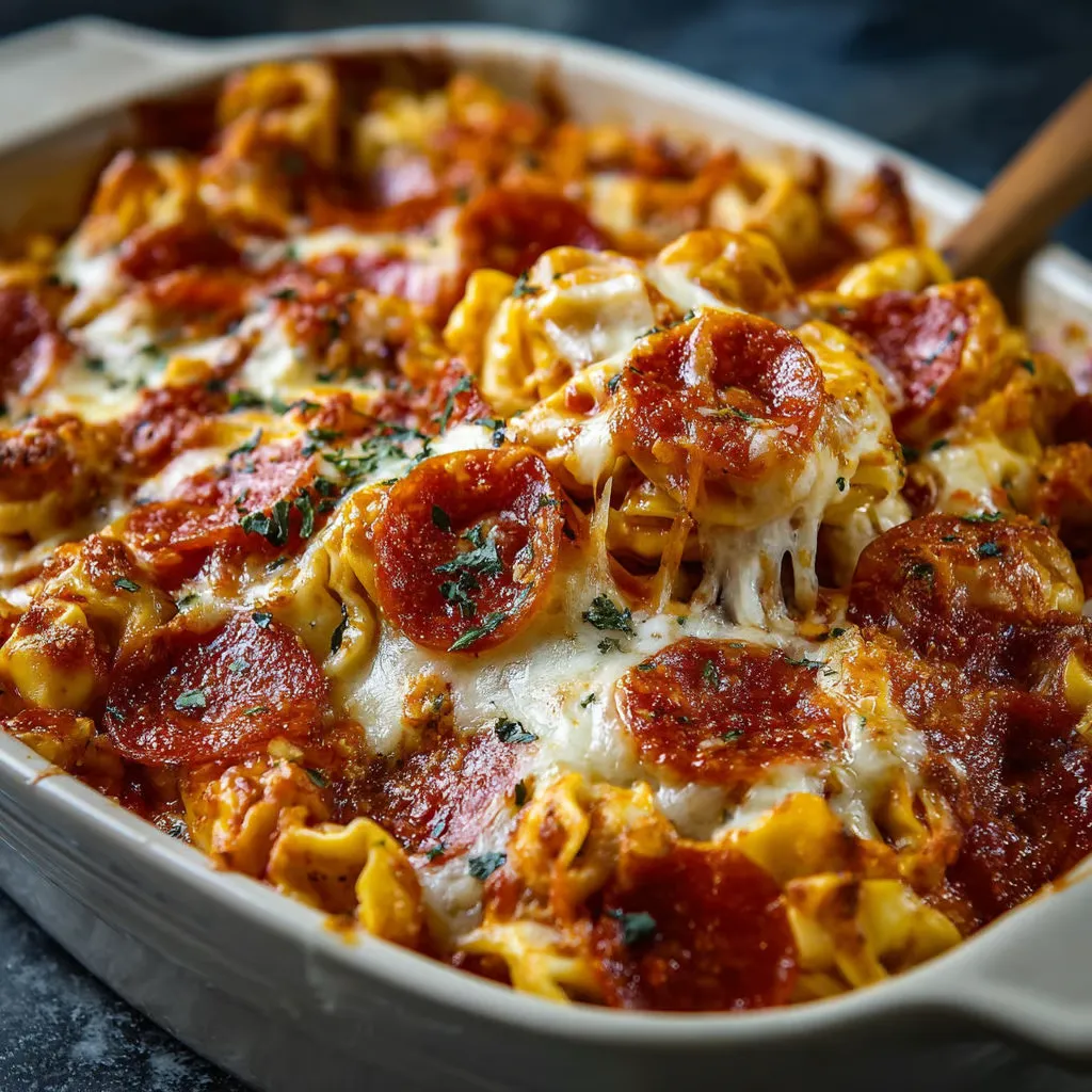 All the gooey, cheesy goodness of pizza meets tender tortellini in this easy, family-friendly bake — ready in under 40 minutes and loved by both kids and adults alike!