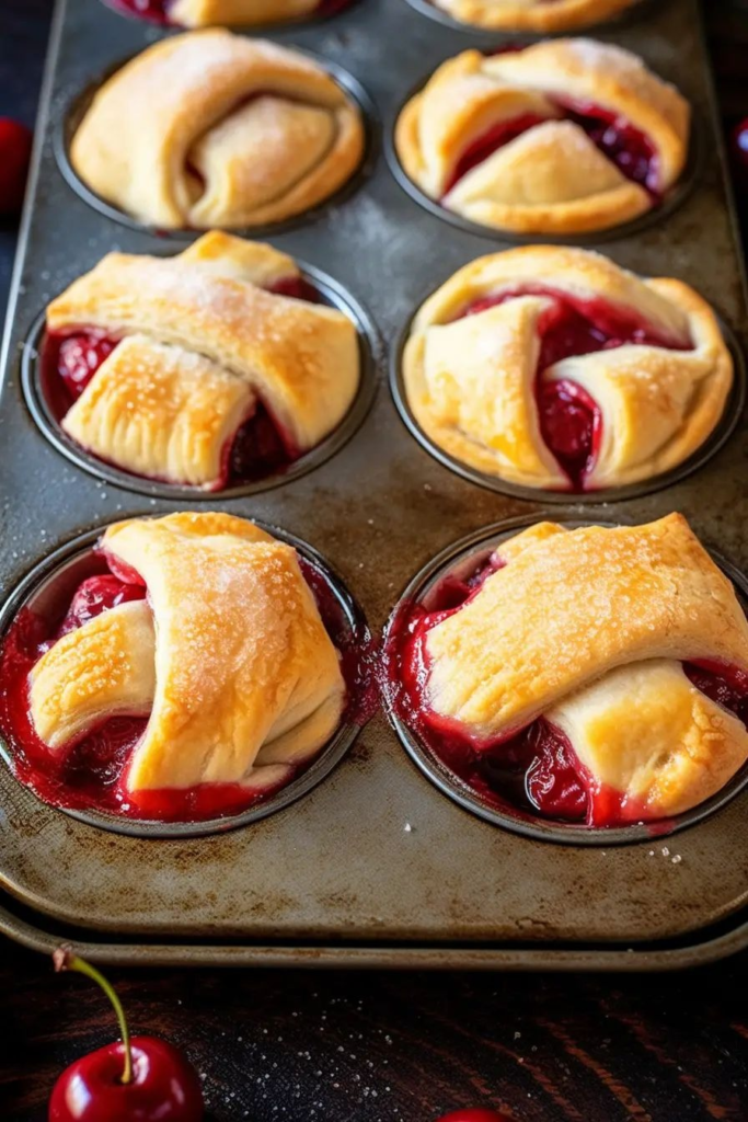 This two-ingredient dessert delivers maximum satisfaction with minimum effort. These Cherry Crescent Muffin Cups are flaky, fruity, and oh-so-easy โ perfect for last-minute guests, sweet-tooth moments, or kid-friendly baking days. Keep a can of crescent rolls and cherry pie filling on hand and youโll always be 15 minutes away from dessert bliss.