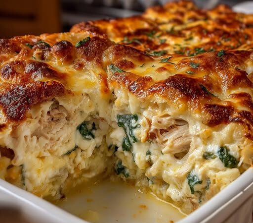 Here’s a simple recipe for the 40-Minute Creamy Garlic Chicken Cottage Bake: