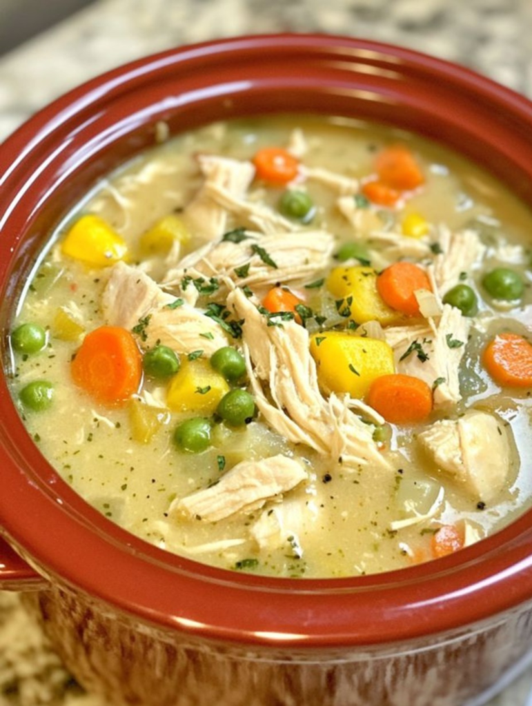 This hearty and comforting chicken vegetable soup is packed with tender shredded chicken, vibrant veggies like carrots, peas, and corn, all simmered in a flavorful broth. Itโs a nourishing dish perfect for any day!