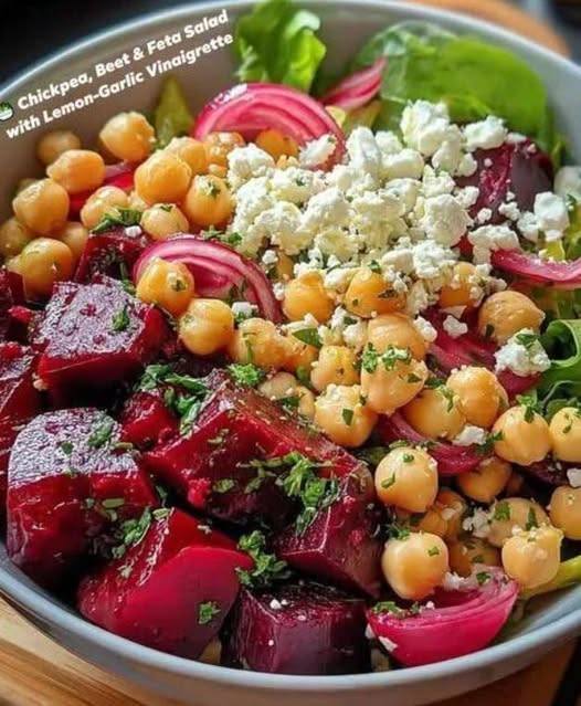 Thisย Chickpea, Beet & Feta Saladย is a vibrant Mediterranean-style dish packed with earthy roasted beets, protein-rich chickpeas, creamy feta, and a bright lemon-garlic vinaigrette. Itโs nutritious, colorful, and perfect as a light lunch or a side dish.