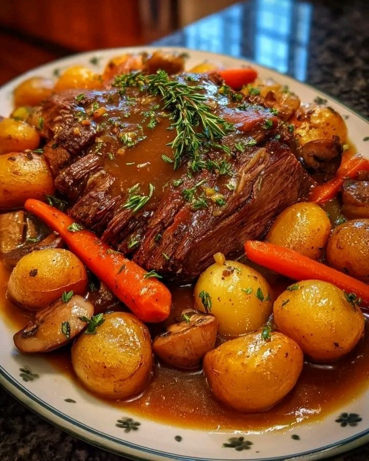 WW-Friendly, Lower-Carb Pot Roast – A slow-braised chuck roast with herbs and vegetables, adjusted in portions to reduce carbs while keeping it satisfying and Weight Watchers–conscious.