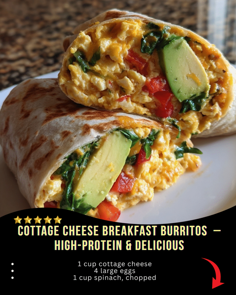 These Cottage Cheese Breakfast Burritos are packed with protein and flavor, featuring a creamy cottage cheese filling with scrambled eggs, spinach, and fresh veggies, all wrapped in a warm tortilla. They’re the perfect way to start your day with a nutritious, satisfying breakfast!