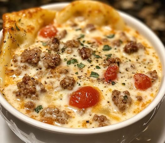 Brown ground sausage in a large saucepan over medium heat. Add onion and mushrooms; cook for 5-6 minutes over medium-low heat.