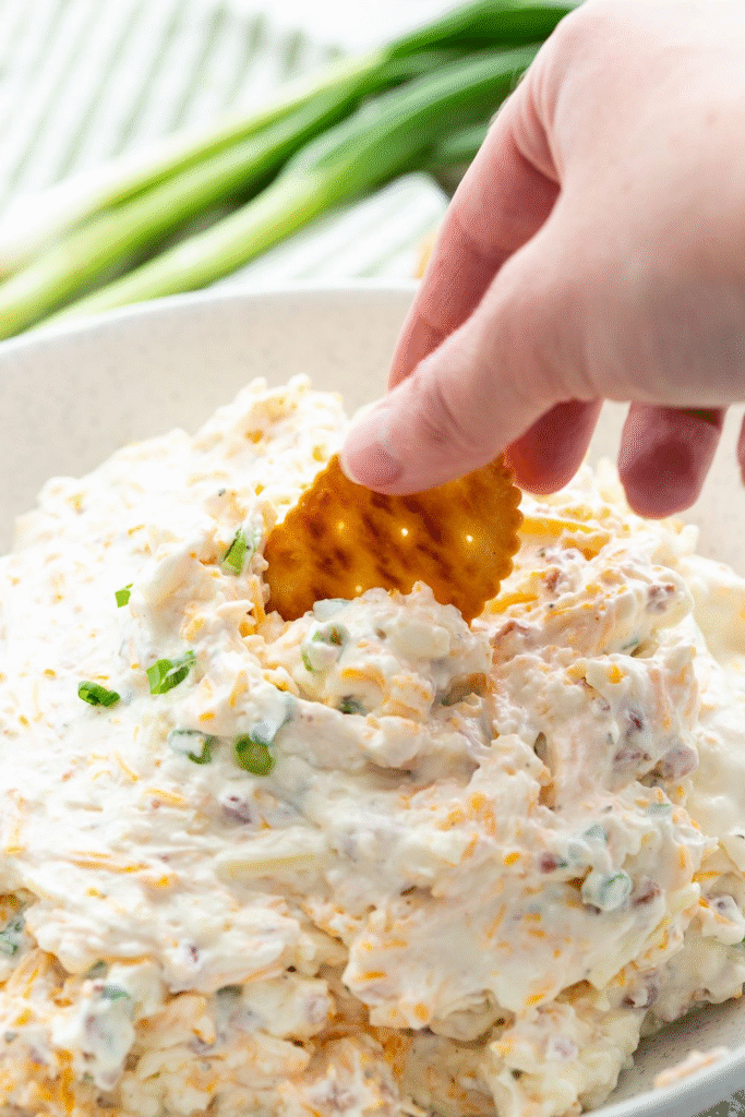 A creamy, cheesy, and savory high-protein dip loaded with smoky bacon, sharp cheddar, and fresh green onions. This easy 5-minute recipe is a hit at parties, potlucks, or as a quick high-protein snack paired with veggies.
