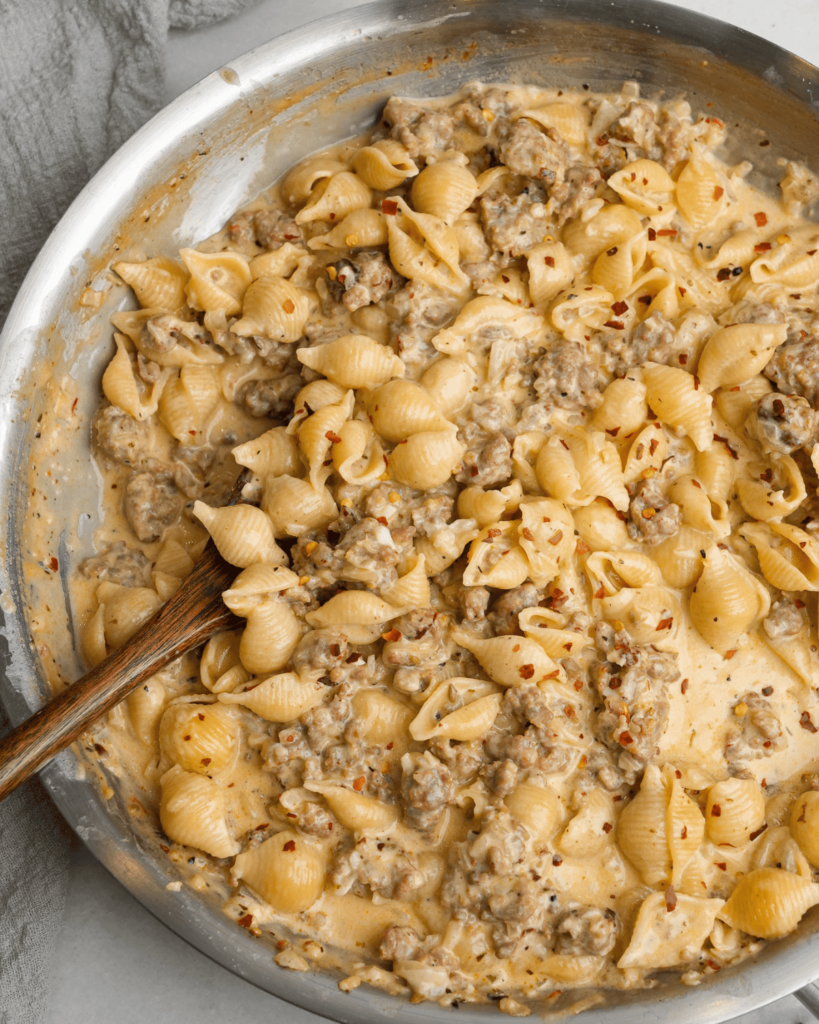 This creamy Italian sausage pasta is a rich, comforting meal packed with bold flavors. Spicy Italian sausage, garlic, onions, and pasta are coated in a luscious white wine cream sauce with Parmesan and pepper jack cheese. Itโs a quick 30-minute dinner that feels restaurant-quality but is incredibly easy to make at home.