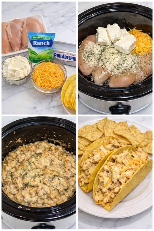 Tender shredded chicken cooked in a rich, creamy ranch sauce with cream cheese and cheddar — served in warm tacos for the ultimate comfort meal.