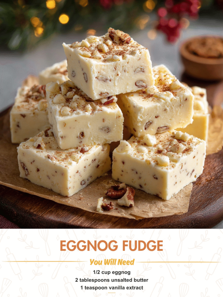 This Eggnog Fudge brings back wonderful memories of holiday gatherings. I remember making fudge with my grandmother during the winter holidays, and eggnog was always a special treat. This recipe is a modern twist on that tradition, and itโs something I love sharing with friends and family. Itโs simple to make but always leaves a lasting impression.