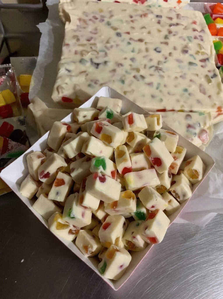 These Four Ingredient Nougat Bars are an easy-to-make, no-bake treat thatโs perfect for holidays, parties, or a sweet snack. With just four simple ingredients โ miniature marshmallows, melted butter, white chocolate chips, and colorful gumdrops โ these bars come together in no time and deliver chewy, creamy, and festive goodness!