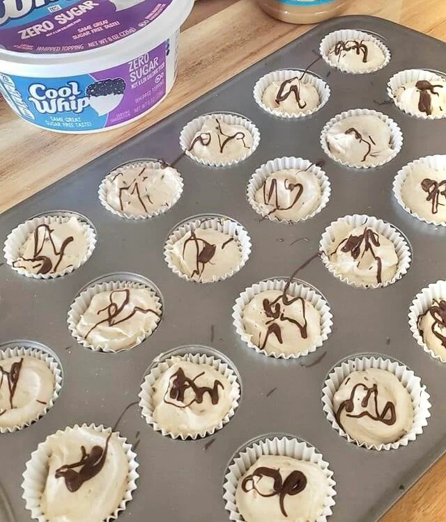 - Drizzle sugar-free chocolate sauce over the top of each peanut butter cup, creating a decorative pattern.