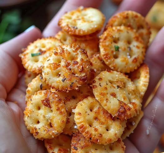 Cheesy Ritz Bits tossed in garlic butter, herbs, and parmesan, then baked until irresistibly crisp.
