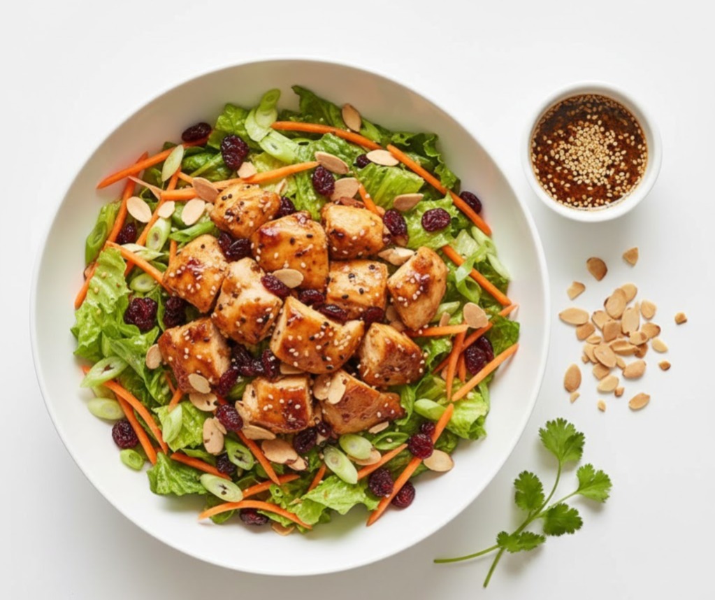 This fresh, colorful Asian-style salad is packed with juicy chicken, crunchy veggies, sweet cranberries, and toasted almonds, all tossed in a savory-sweet sesame dressing. High in protein, filling, and perfect for lunch or dinner.