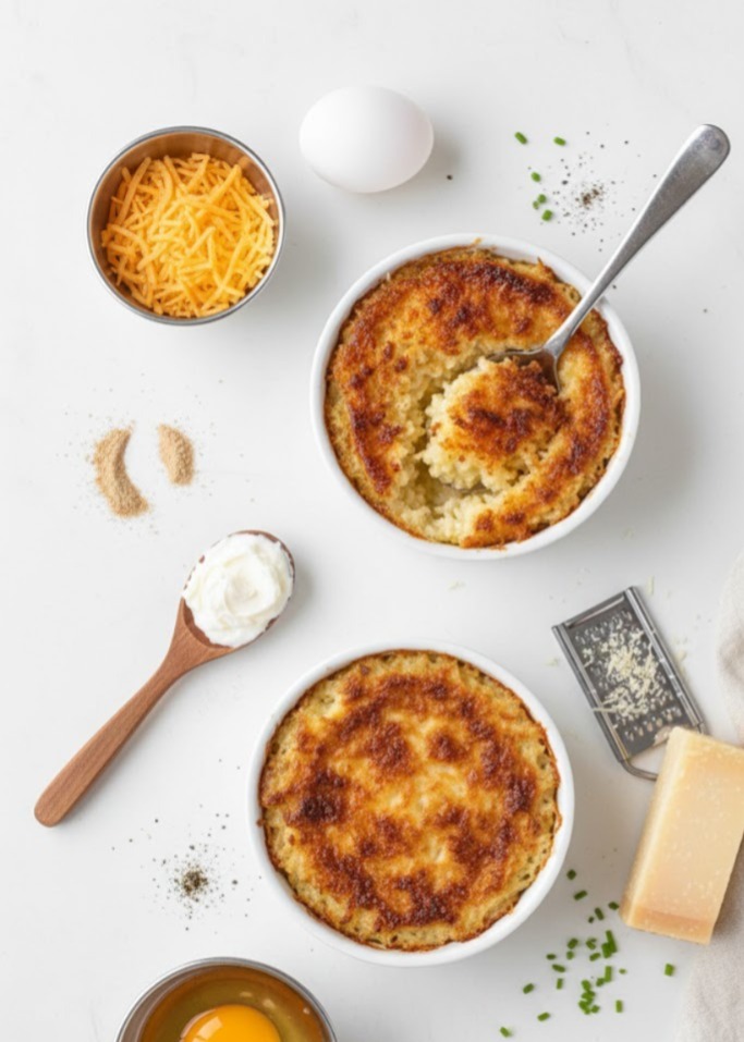 A savory, creamy, and cheesy rice bake with a crispy golden top. This high-protein, low-carb version swaps out traditional rice for cauliflower rice, keeping it light yet indulgent. Perfect for a low-carb side dish or a comforting meal on its own.