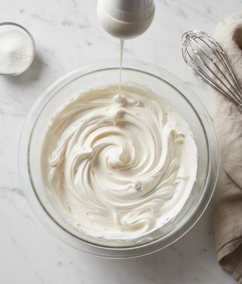 This is a high-protein remake of the classic 7-Minute Frosting you see in the image—light, glossy, and cloud-like, with that nostalgic marshmallow-cream flavor.
