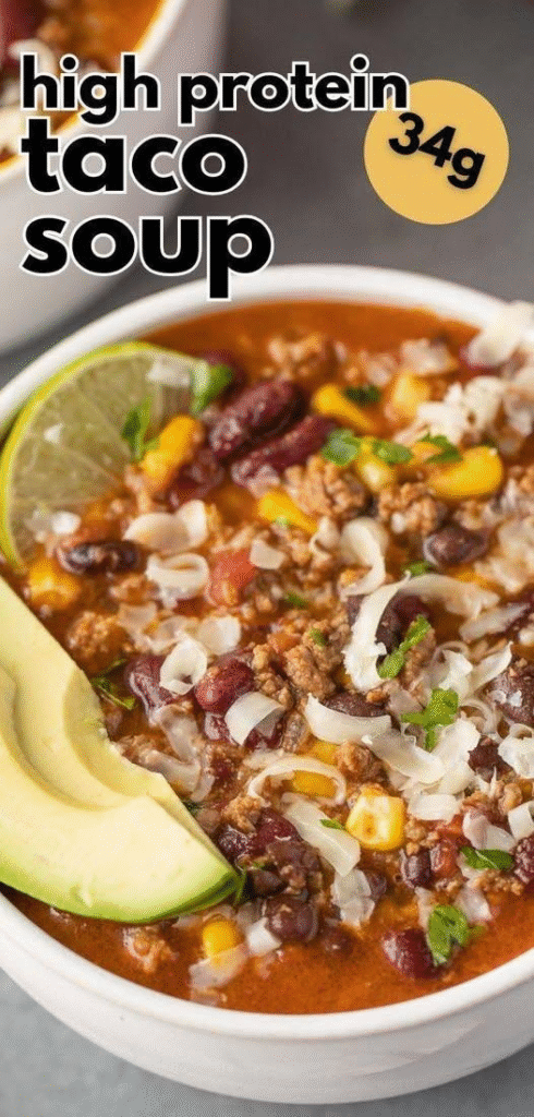 Give this high-protein taco soup a try! Itโs easy, filling, and packed with flavor. Share your taco soup creation with us in the comments below, and tag a friend who would love this recipe!