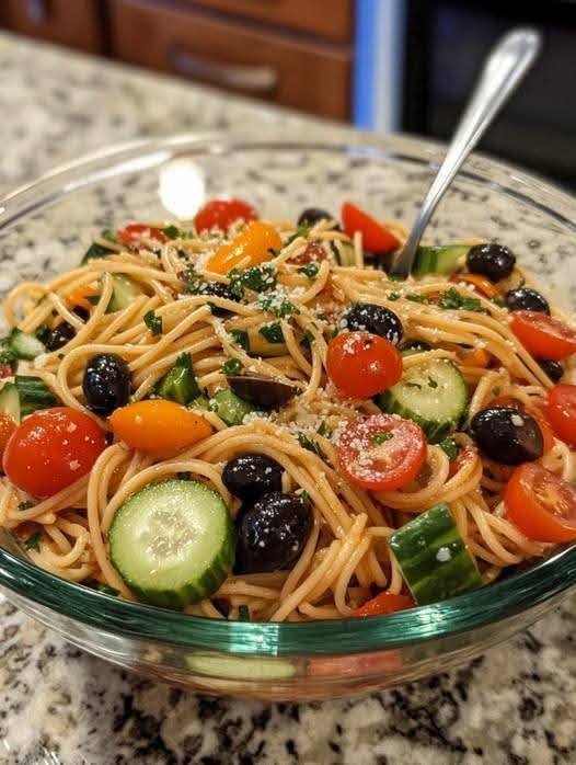 This High-Protein Veggie Pasta Salad is a refreshing and nutritious dish packed with colorful vegetables, whole wheat pasta, and protein-rich ingredients like chickpeas or grilled chicken. The combination of crisp cucumbers, juicy tomatoes, and Kalamata olives tossed in a light, zesty dressing makes for a perfect meal prep or side dish for gatherings.