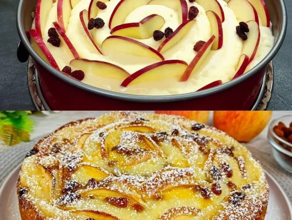 - Pour the batter into the prepared baking pan. Arrange the apple slices on top in a decorative pattern.