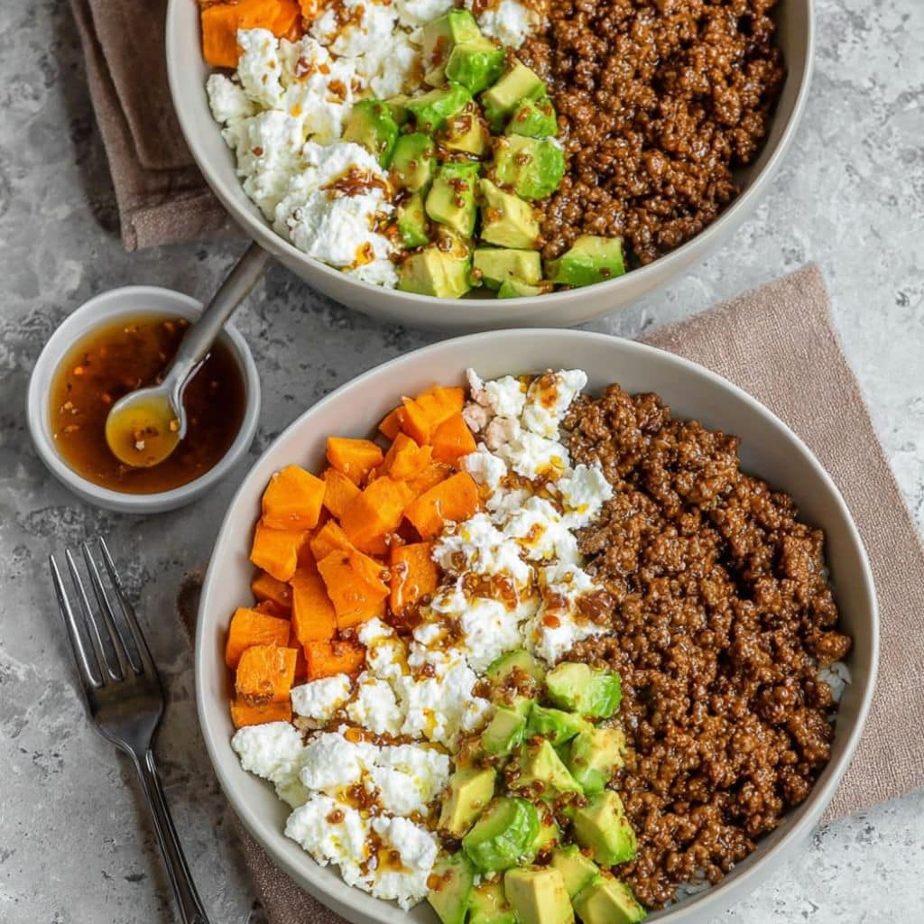 - Assemble bowls: add rice, top with hot honey beef, then vegetables.
