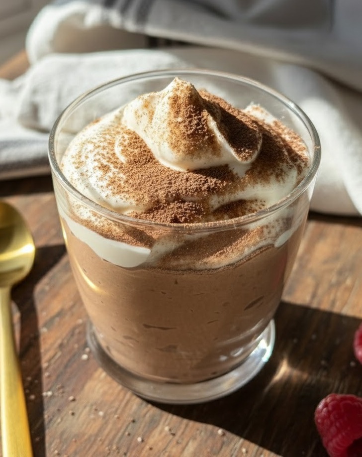 - Optional garnish: For an extra touch, dust with a little cocoa powder or add some cocoa nibs or chocolate shavings for a more decadent feel.