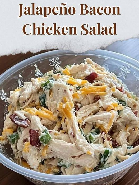 Imagine sizzling bacon filling your kitchen with smoky aroma while tender chicken is cooling on the counter. You dice fresh jalapeños, sharp cheddar, and stir everything into a creamy sauce. Once combined, the salad is spicy, smoky, cheesy, and hearty — the kind of recipe that doesn’t just fuel your body, but makes you excited to eat healthy.