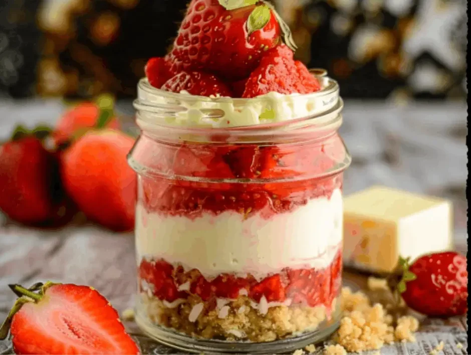 Keto Cheesecake Jars with Strawberries are mildly sweet with a low-carb content. We make this dish with a variety of ingredients, including fresh strawberries, erythritol, cream cheese, heavy cream, almond flour, vanilla extract, egg, and butter. Some of them are simple ingredients that can be easily purchased from stores and will be in your pantry. We don’t reqire oven to bake this dish because the filling already has a great texture. Keto Cheesecake Jars with Strawberries are ideal for early morning meals, short occasions, and dinner. They contain 320 kcal of calories and 6 g of net carbs in 1 jar of one portion. These jars store well for a month in the freezer. We require almost forty minutes to prepare these jars with strawberries. Serve them with the chocolate Mousse or keto berry parfaits.