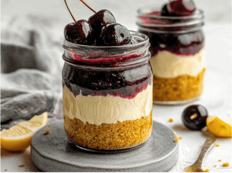 Keto Cherry Cheesecake Jars are a rich, low-carb treat. It has all the tastes of a traditional cheesecake in a handy single serving. This creamy cheesecake filling is made with cream cheese, heavy cream, and vanilla essence for this no-bake dessert, and this dessert is sweetened with a keto-friendly sweetener. This dessert is completely keto-friendly because of the buttery almond flour crust, which resembles a classic graham cracker crust, keto cherry topping, which is made from frozen or fresh cherries and sweetened with a low-carb sweetener, and a touch of lemon, which tops it all off. These jars create a stunning dessert for any occasion and are ideal for controlling portion sizes. These Keto Cherry Cheesecake Jars are the perfect blend of creamy and fruity, and satisfy all people without the carbohydrates, whether you’re in the mood for something sweet or need a treat for a special occasion.