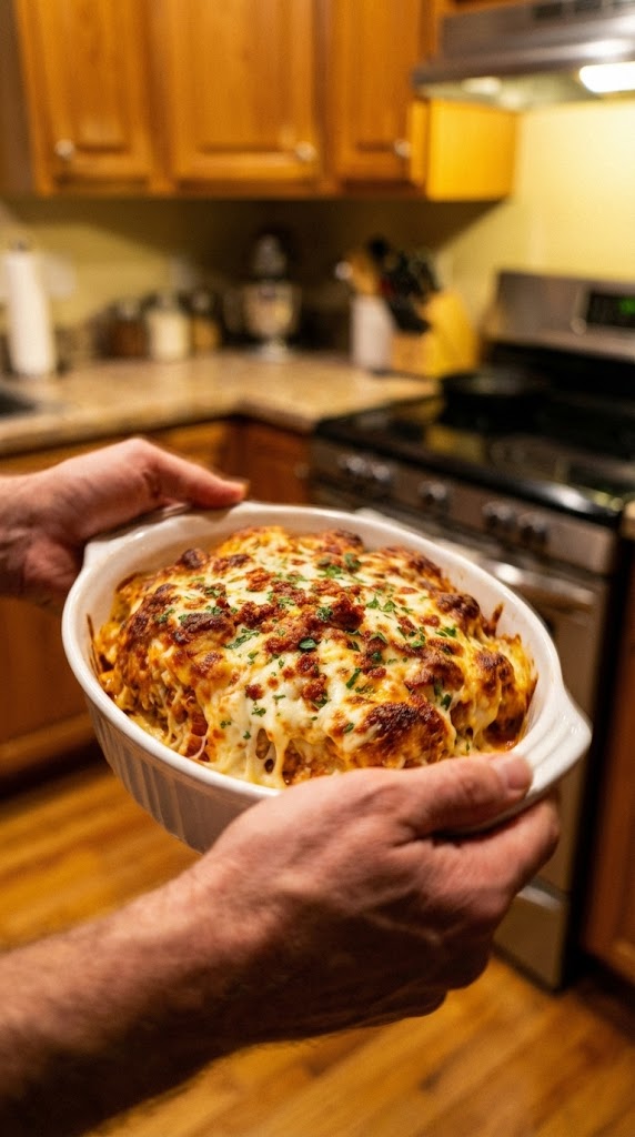 Bake for 20–25 mins until hot and bubbly. Broil 2 mins for golden cheese.