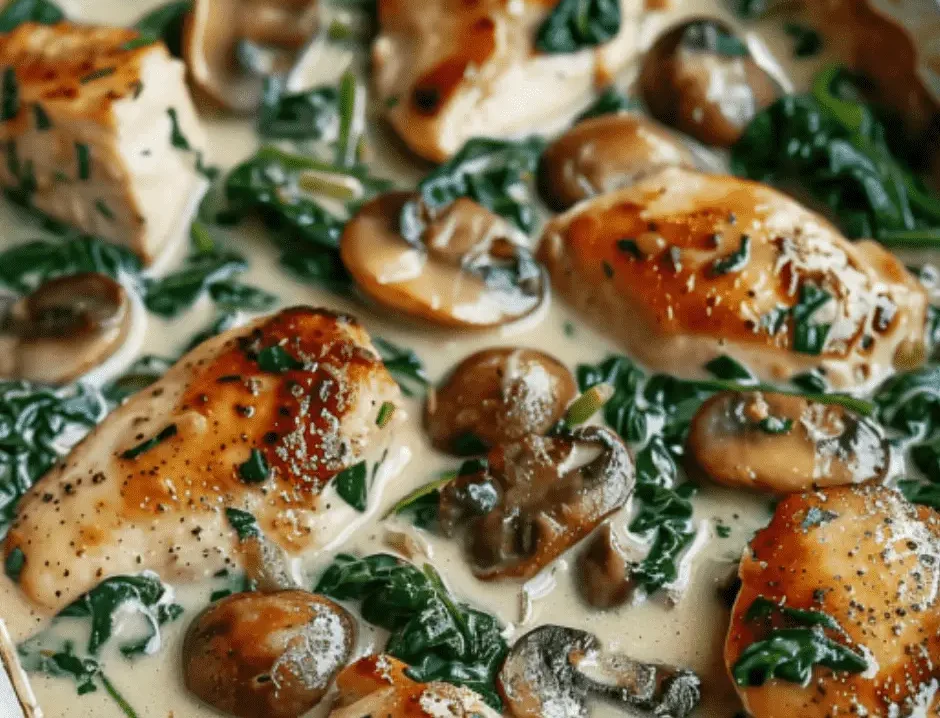 Keto Chicken Spinach & Mushroom is a delicious, savory dish. This dish contains protein from chicken, healthy fats from cheese and cream, and nutrients from the spinach, so this dish is very good for a ketogenic diet. It features a combination of a few simple ingredients that we can easily get from the store or might even be present at home. This dish doesn’t require much cooking time, and it gets ready in only forty-five minutes, so this dish is best for quick weeknight dinners. Zoodles, cauliflower rice, along salad are great with this dish. This Keto Chicken Spinach & Mushroom Dish stores properly, so it is good to prepare this for the meal plan.