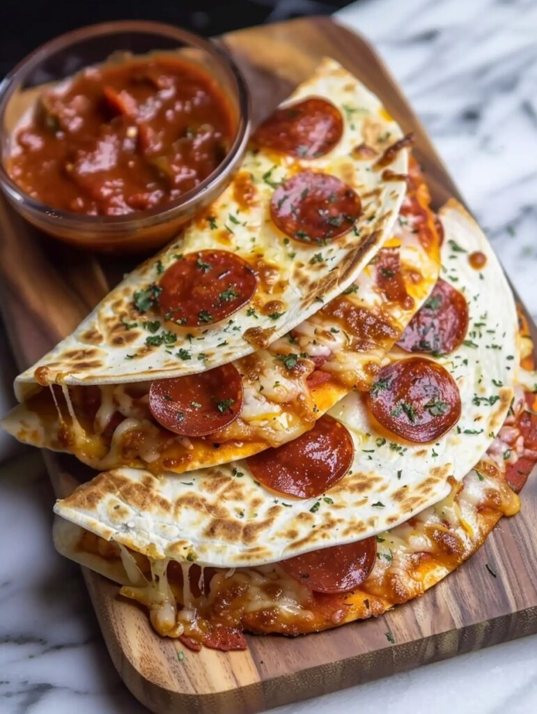 These quesadillas are a simple, family friendly meal perfect lunch or quick dinner to be served with warm marinara and a side salad! No matter when you serve it, even your pickiest eater will love!