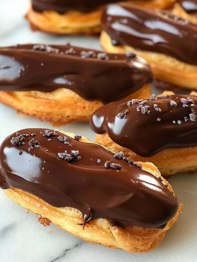 Keto Eclairs are a low-carb, sugar-free take on the classic French pastry. These delicate pastries consist of light choux pastry filled with a rich, sugar-free vanilla custard and topped with a glossy chocolate glaze. Enjoy the indulgent flavors of an eclair without the guilt. Here’s how to make them.