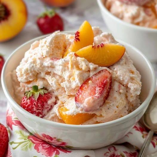 - Serve your keto Strawberry Peach Cheesecake Fluff in the bowls or dessert cups after chilling.