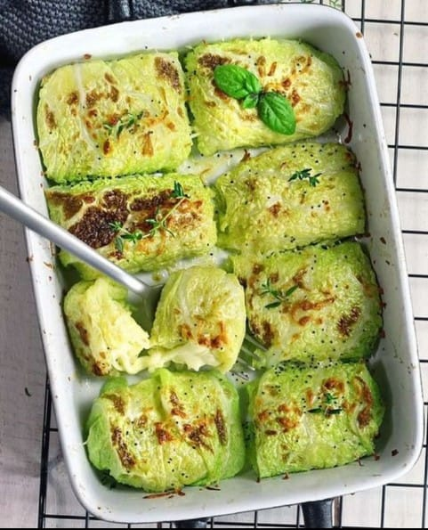 Cover with foil and bake for 30โ40 minutes, until the cabbage is tender and the filling is heated through.