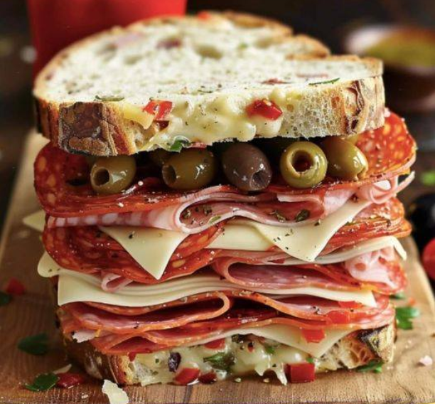 This classic New Orleans sandwich is perfect for a hearty lunch or picnic, packed with rich flavors and textures.