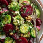 Add crushed tomatoes, cherry tomatoes, oregano, red pepper flakes, salt, and pepper. Simmer for 8–10 minutes until slightly thickened.