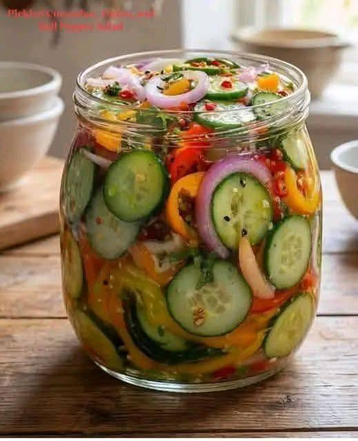 This pickled cucumber, onion, and bell pepper salad is crisp, tangy, slightly sweet, and full of fresh crunch. It is one of those easy fridge recipes that gets better as it sits, making it perfect for meal prep, snacking, or serving alongside grilled meals.