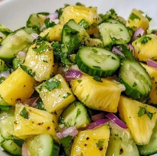 Pineapple, cucumber, and lime combine for a fresh, vibrant side dish perfect for summer gatherings.