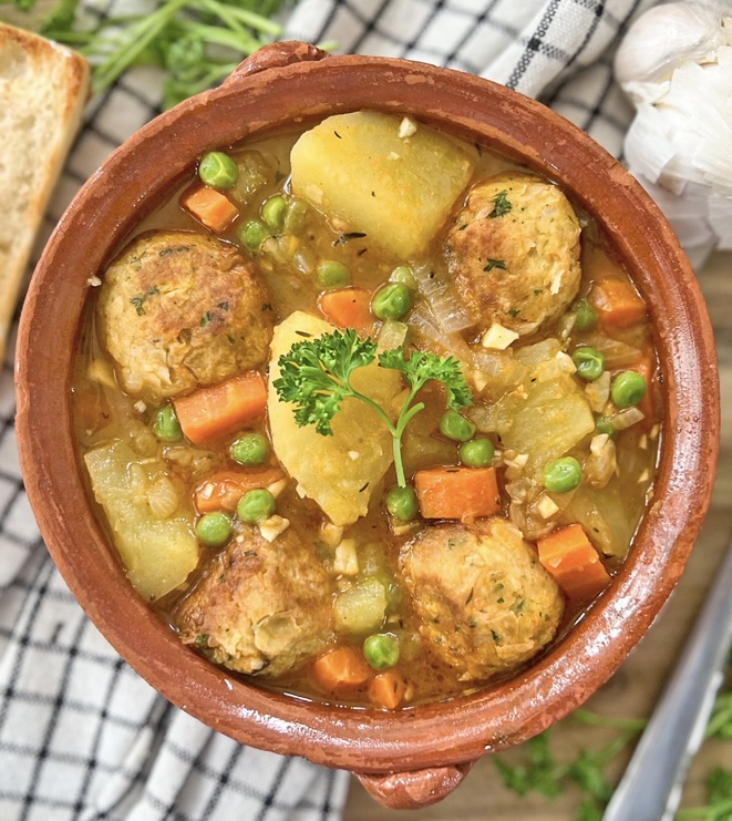 This Vegetarian Meatball and Potato Stew is what heart-warming and delicious food is all about. We’re talking layer upon layer of so many great flavors, made with basic pantry staples and all done in a little over 40 minutes. Serve it next to some tomato-rubbed bread and a bottle of Spanish red wine for an incredible meal.